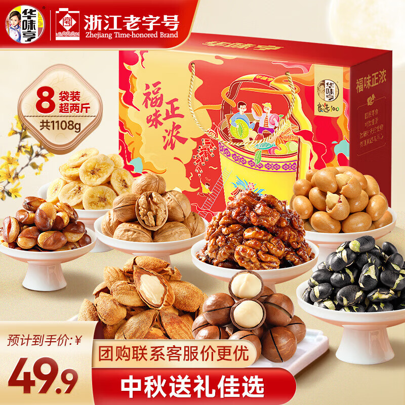 »ªÎ¶ºà¼á¹ûÀñºÐ1108g/8´ü ÖÐÇïÍŹºËÍÀñ¼á¹û³´»õÏÄÍþÒĹûºËÌÒÐÝÏÐÁãʳ ¡¾º¬4´ü´¿¼á¹û¡¿1108gÀñºÐ