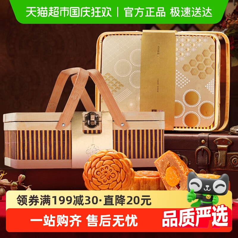 五芳斋月饼礼盒情韵五芳640g竹篮款蛋黄莲蓉豆沙五仁中秋节礼品