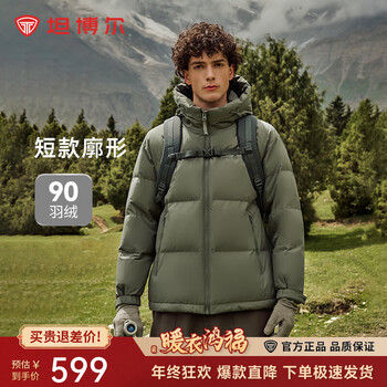 坦博尔【店长推荐】羽绒服男短款宽松休闲90绒连帽外套潮冬装TAF530353J 深铬绿 M (170) 170