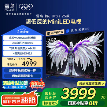 FFALCON雷鸟鹤6 Ultra 25款 75英寸 MiniLED家电国家补贴 超高对比度 一级能效智能电视机75S595C Ultra