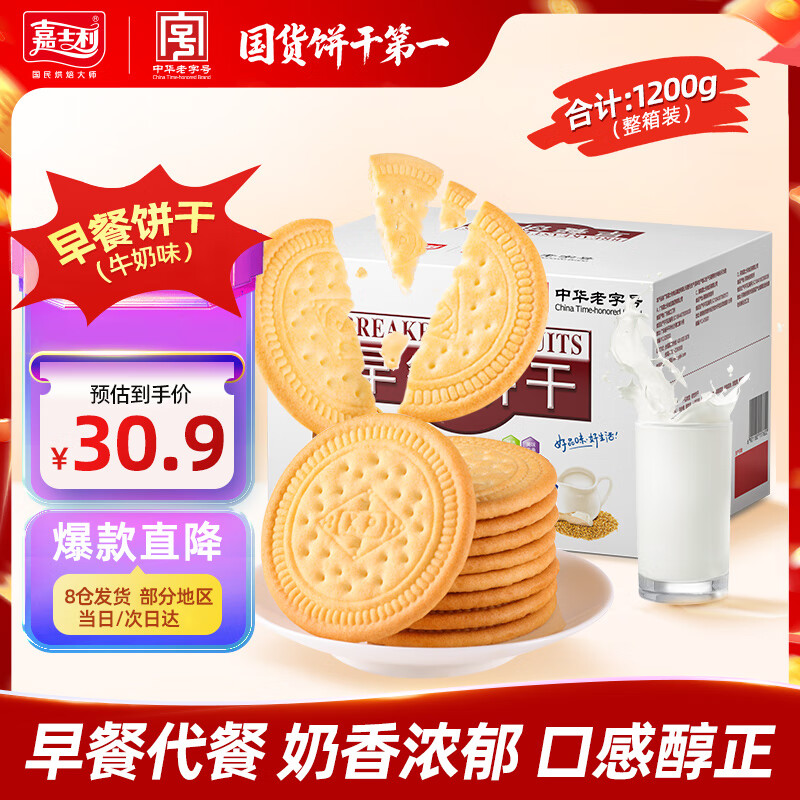 嘉士利营养早餐饼干牛奶味1200g/箱 办公室休闲零食下午茶小吃礼盒团购