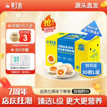 黄天鹅鸡蛋可生食鸡蛋30枚L级大蛋单枚60g鲜鸡蛋礼盒源头直发