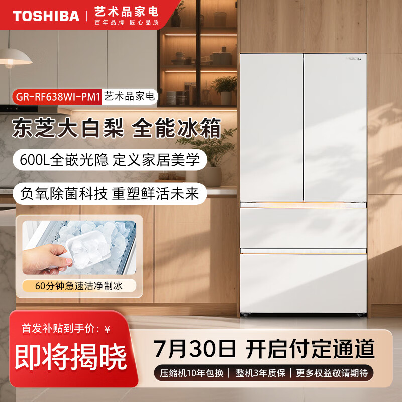 东芝(TOSHIBA)大白梨冰箱638法式高容全嵌入式全能制冰双系统除菌保鲜四开门风冷无霜大容量家用GR-RF638WI-PM1