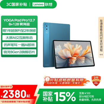 联想【国家补贴15%平板电脑】YOGA PadPro12.7英寸 骁龙8Gen3 2.9K 无损抗反射超感屏 8+128G蓝
