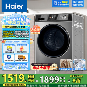 海尔(Haier)全自动滚筒洗衣机 10公斤家用洗烘一体机 初色系列MAX29S 一级能效省电省水 以旧换新 国家补贴20%