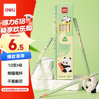 得力(deli)熊猫三角杆书写铅笔10支HB铅笔原木学生考试素描绘图铅笔写字练字书写礼物XM910-HB学生开学礼物