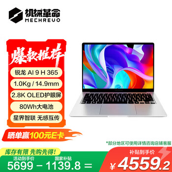 机械革命【国家补贴20%】星耀14(AI 9H 365 32G 1T 2.8K OLED 120Hz100%DCI-P3钛银)轻薄办公笔记游戏本