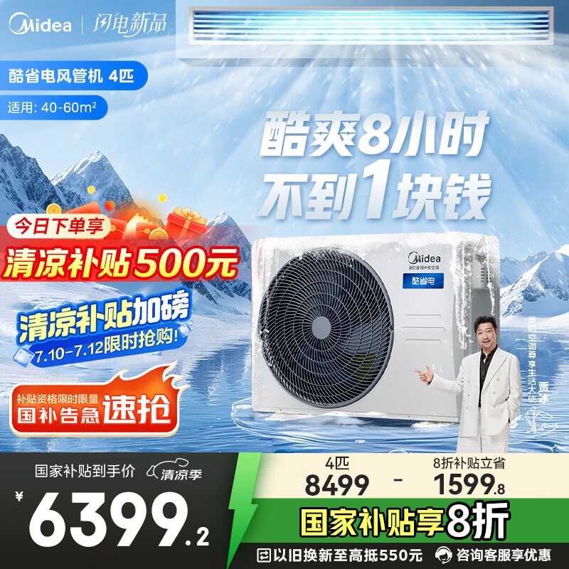 美的(Midea)4匹 酷省电 风管机一拖一 超一级能效 家用中央空调【行业领先APF4.45】 KFR-90T2W/B3-KS(1)