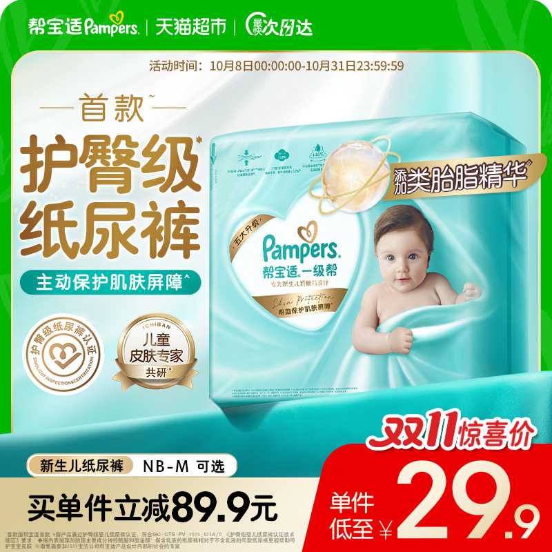 【护臀级】帮宝适一级帮纸尿裤添加类胎脂超薄透气NB-M尿不湿体验