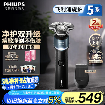 飞利浦(PHILIPS)电动剃须刀新一代旋护5系 净护双升级AI智能痘敏肌刮胡刀 生日礼物送老公 国家补贴