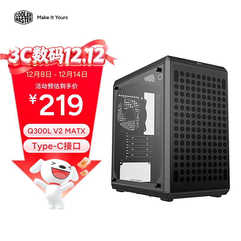 酷冷至尊(CoolerMaster)Q300L V2 黑 MATX电脑台式小机箱 支持240散热水冷/钢玻侧板/USB 3.2 Type-C