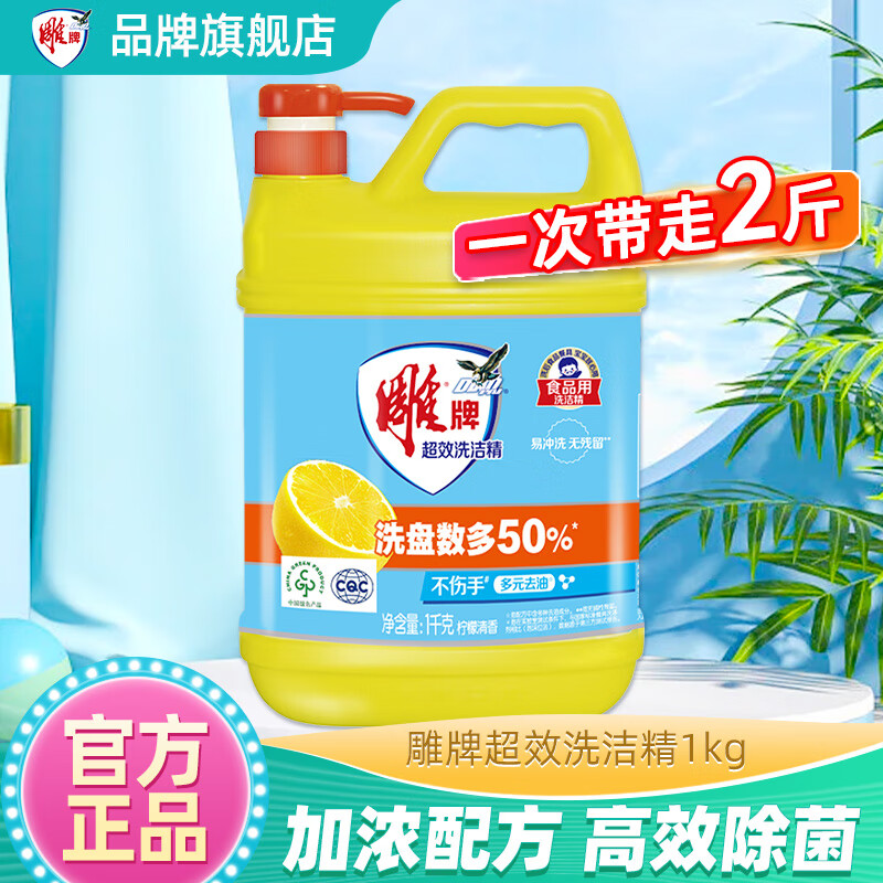 雕牌洗洁精全效加浓家用实惠装洗涤剂果蔬食品清洗剂洗碗液 超效洗洁精1kg*1瓶