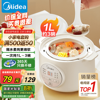 美的(Midea)电炖锅1-2人电炖盅隔水炖锅家用燕窝炖盅陶瓷炖汤盅电炖锅婴儿辅食小炖锅煲汤电炖锅电砂锅煲汤锅 1L 【1L=3碗 防烫把手】DZE1066
