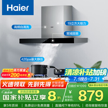 海尔(Haier)抽油烟机 顶吸欧式吸油烟机 420pa大风压大吸力 自动清洗 政府补贴以旧换新 厨房家用排烟机T3S