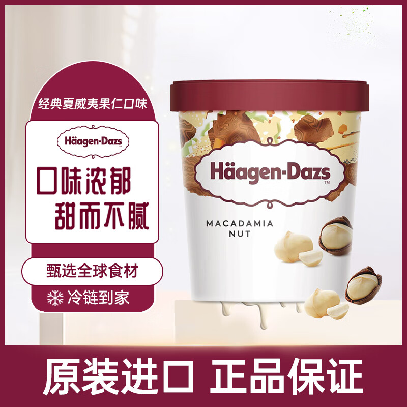 哈根达斯冰淇淋大杯473ml 冷饮冰淇淋大杯家庭装 经典夏威夷果仁口味冰淇淋 473ml