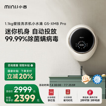 小吉(MINIJ)1.1kg智能迷你壁挂洗衣机 全自动母婴专洗直驱变频 一级能效 防跌落 小水滴 G5-XMB Pro