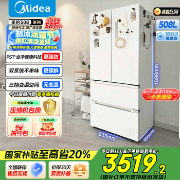 美的(Midea)508升白色法式对开多门家用电冰箱除菌净味双系统冰箱家电国家补贴真香系列 BCD-508WTPZM(E)白