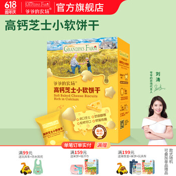 爷爷的农场宝宝零食饼干强化钙不添加白砂糖盐儿童零食出行便携 高钙芝士小软饼60g