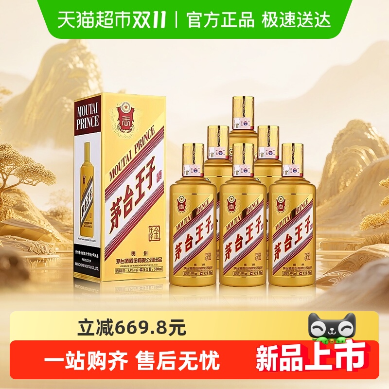 茅台王子酒金王子53度500ml*6整箱装 酱香型白酒送礼自饮jz