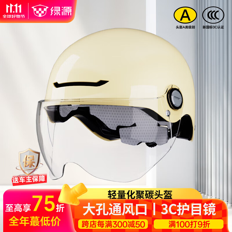 绿源(Luyuan)电动车头盔A类男女通用自行电瓶车骑行夏季半盔摩托机车安全帽 轻量化新品/抗菌内衬-卡其 均码