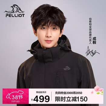 伯希和(Pelliot)[成毅同款]山野2.0冲锋衣男女三合一秋冬硬壳外套 11340105黑2X