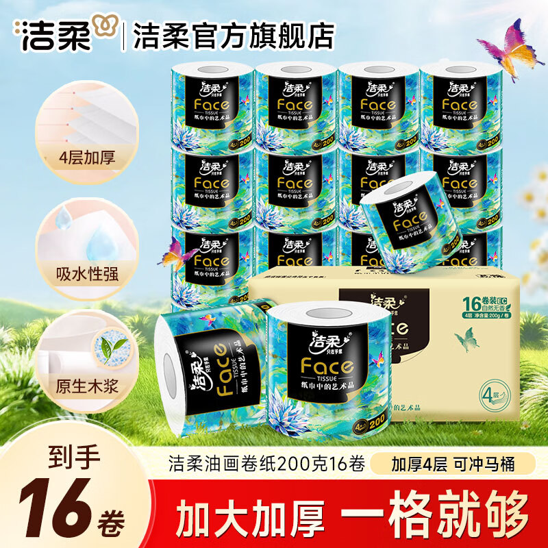 洁柔油画系列卷纸4层200g16卷卷纸卫生纸有芯卷筒纸厕纸家庭版整箱装 4层 200g/卷*16卷