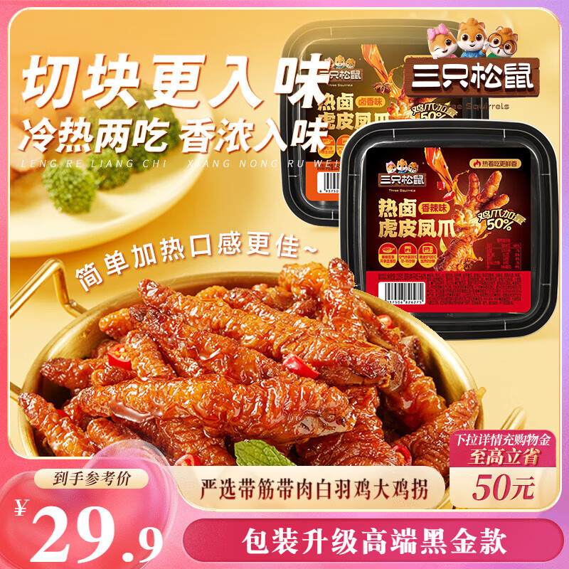 三只松鼠热卤虎皮凤爪香辣味235g*3 即食鸡爪熟食卤味宿舍夜宵休闲零食