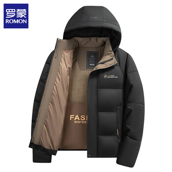 罗蒙(ROMON)男士棉衣外套2024冬季新款连帽保暖棉服男装棉袄上衣爸爸装 2858黑色 2XL