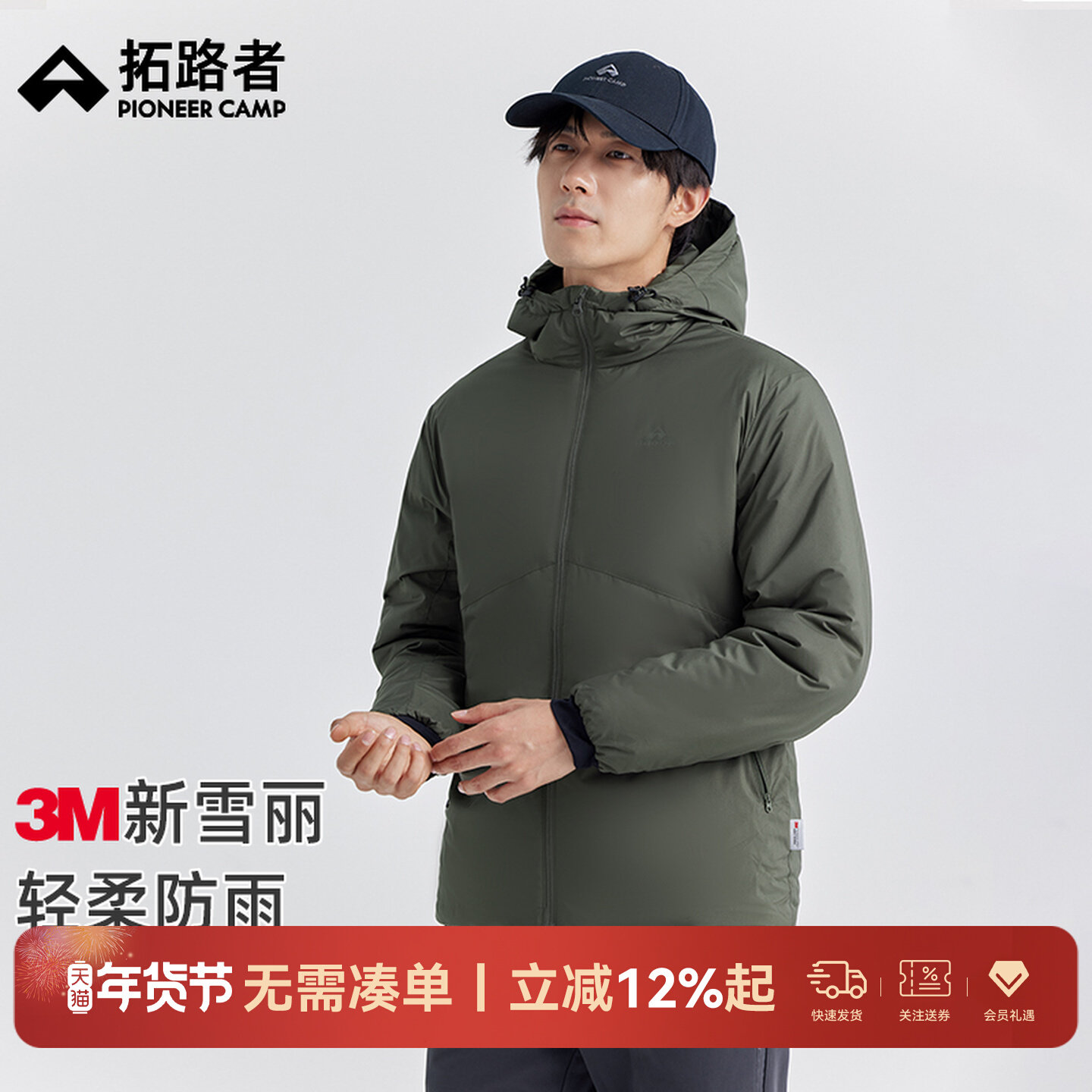拓路者3M新雪丽棉服男2025秋冬新款连帽保暖简约夹棉外套冬季棉衣