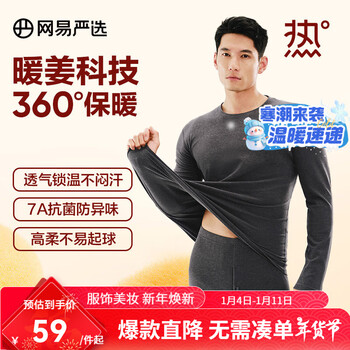 网易严选7A抗菌暖姜蓄热保暖内衣套装 轻薄保暖 裸感舒适 弹力贴身 【7A抗菌暖姜内衣】星河灰-男 2XL