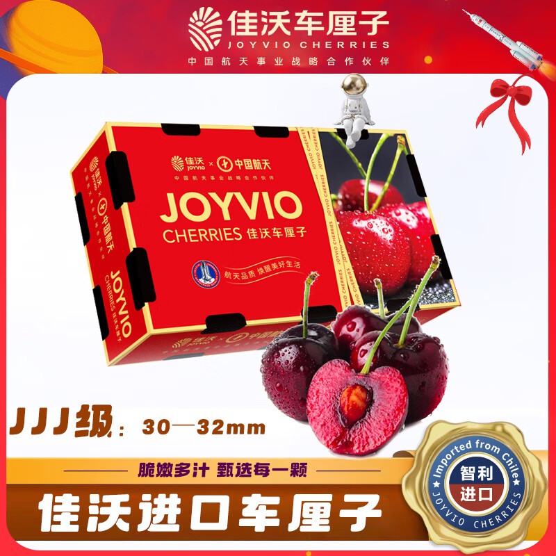 佳沃(JOYVIO) 智利车厘子巨无霸3J级 1kg礼盒装 果径约30-32mm 源头直发 包邮