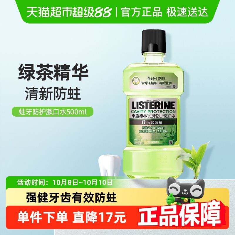 李施德林绿茶含氟漱口水防蛀牙温和减少口 臭强健牙龈