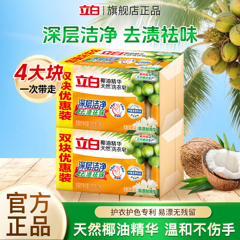 立白洗衣皂强力去污椰油皂深层去渍祛味不伤手肥皂实惠组合装增白皂 【强效去渍】天然椰油皂205g*4块