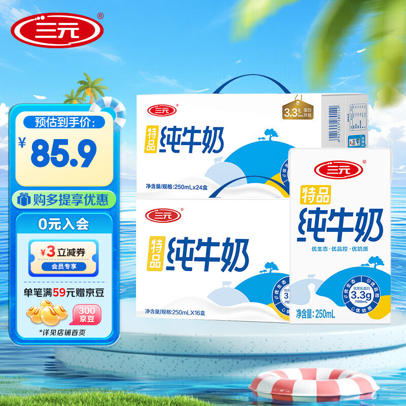 三元(SAN YUAN)5月产 特品纯牛奶250ml*24盒+特品纯牛奶250ml*16盒 组合装整箱