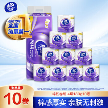 维达(Vinda)有芯卷纸 棉韧4层180克*10卷 高克重 大分量纸巾
