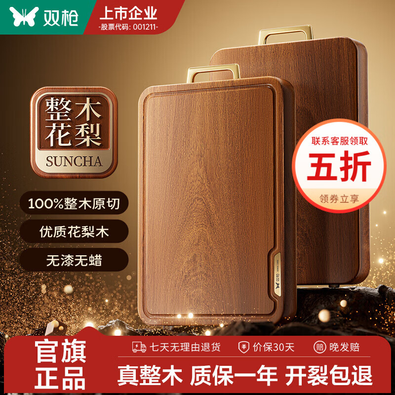 双枪整木金标非洲花梨木切菜板实木菜板防霉抗菌家用食品级案板砧板 【金标加厚】50*33CM(4-6人款)
