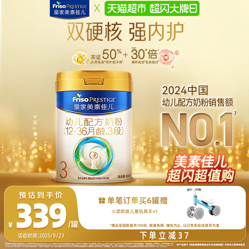 【乳铁蛋白】皇家美素佳儿幼儿配方奶粉新国标3段(12-36月)单罐装