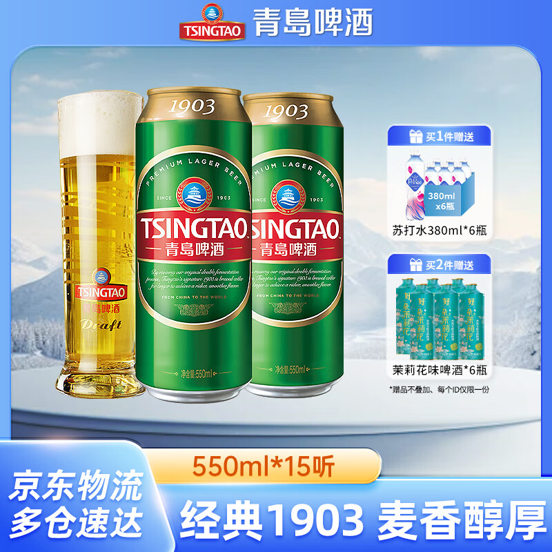 青岛啤酒升级款大容量经典1903 经典原麦汁浓度10°P啤酒 550mL 15罐