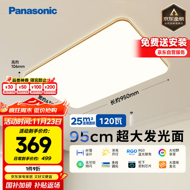松下(Panasonic)吸顶灯客厅大灯超薄灯120瓦客厅灯明畔棕HHLAZ6066L【包安装】