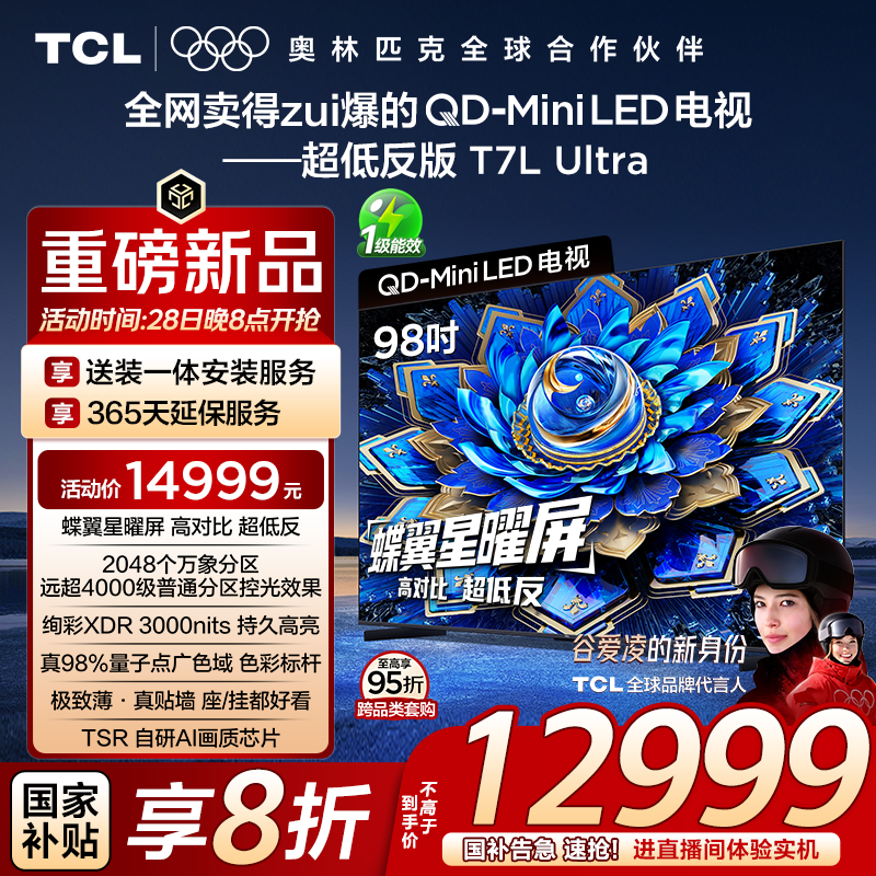 TCLµçÊÓ 98T7L Ultra 98Ó¢´ç QD-Mini LED µûÒíÐÇêׯÁ ÍòÏó·ÖÇø Ѥ²ÊXDR 3000nits 98/100Ó¢´çµçÊÓ
