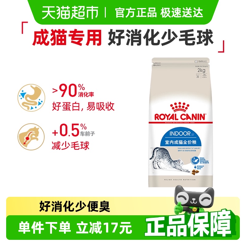 皇家猫粮I27室内成猫猫粮2kg英短蓝猫美短布偶全价猫粮官方正品
