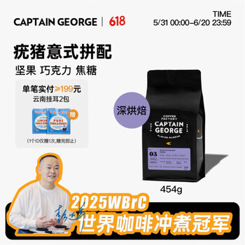 乔治队长(Captain George)疣猪拼配意式咖啡豆精品浓缩美式拿铁新鲜深烘焙454g源头直发