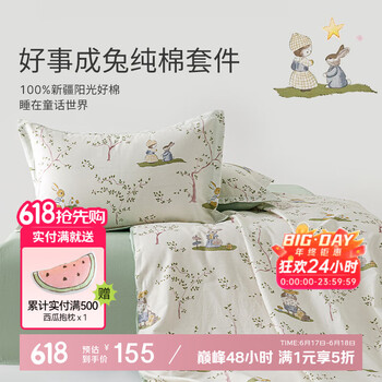 艾美家床上四件套纯棉100%被罩全棉套件被套床单四件套ins风 好事成兔