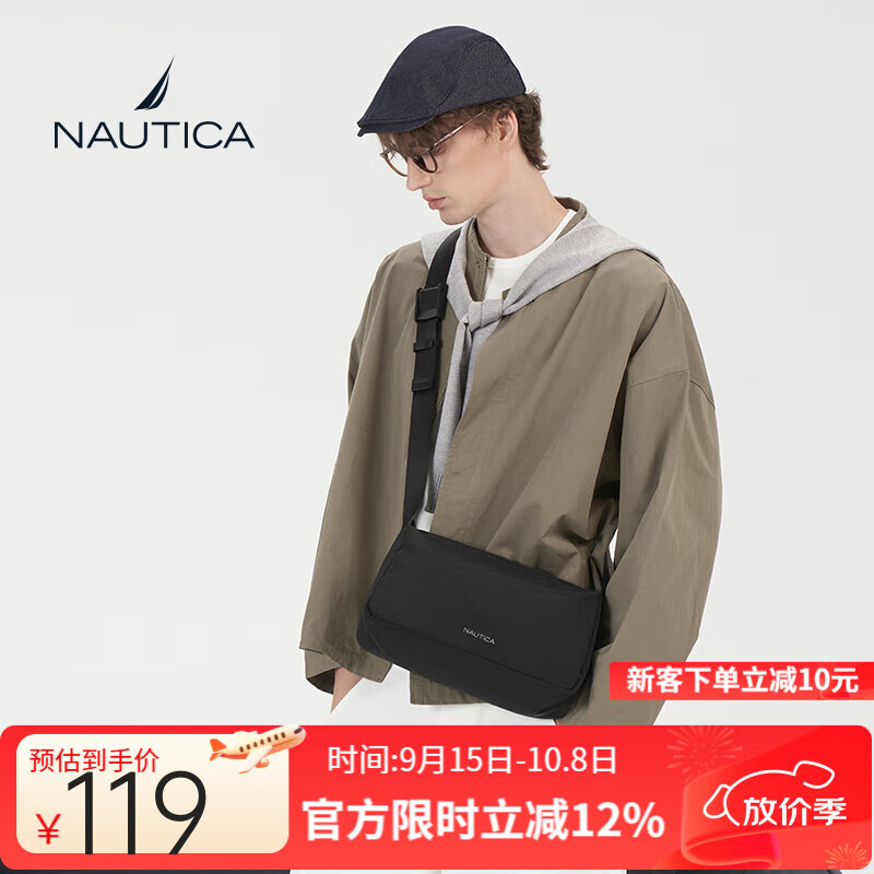 NAUTICA诺帝卡大容量斜挎包男士单肩背包日系骑行通勤邮差包休闲旅行挎包