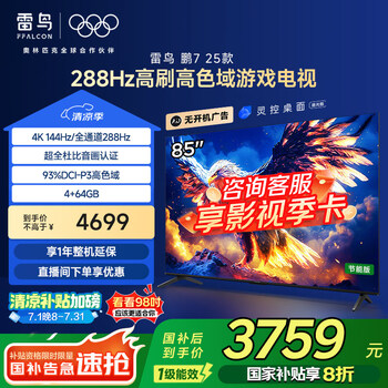 FFALCON雷鸟 鹏7 25款 85英寸 家电国家补贴 游戏电视 4K超高清 4+64GB 一级能效电视机85S385C Pro-J
