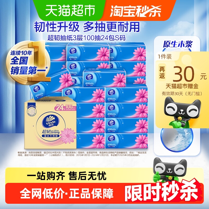 维达超韧抽纸100抽24包S码餐巾纸家用