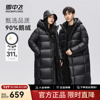 雪中飞【黑曜石系列】秋冬男女情侣同款长款鹅绒羽绒服百搭时尚加厚抗寒 黑色|8056 160/84A