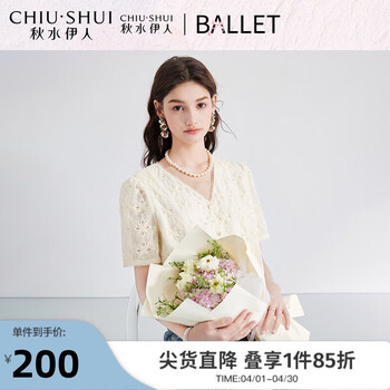 秋水伊人秋水伊人设计感蕾丝小V领衬衫2024年夏季新款女装百搭小个子上衣 米白 S