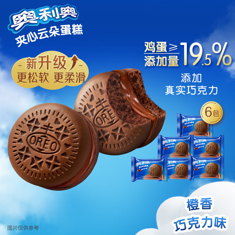 奥利奥(Oreo)夹心云朵蛋糕橙香巧克力味6枚132g 糕点休闲零食 早餐下午茶