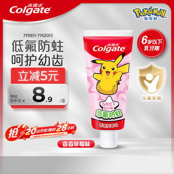 高露洁(Colgate)宝可梦儿童牙膏0-6岁香香草莓味40g防蛀呵护乳牙含氟温和清洁
